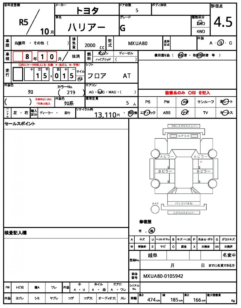2023 TOYOTA HARRIER (LEXUS RX300) G