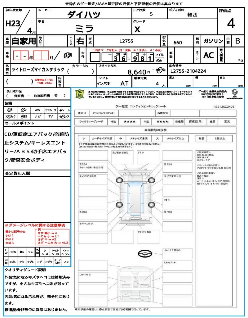 2011 DAIHATSU MIRA X
