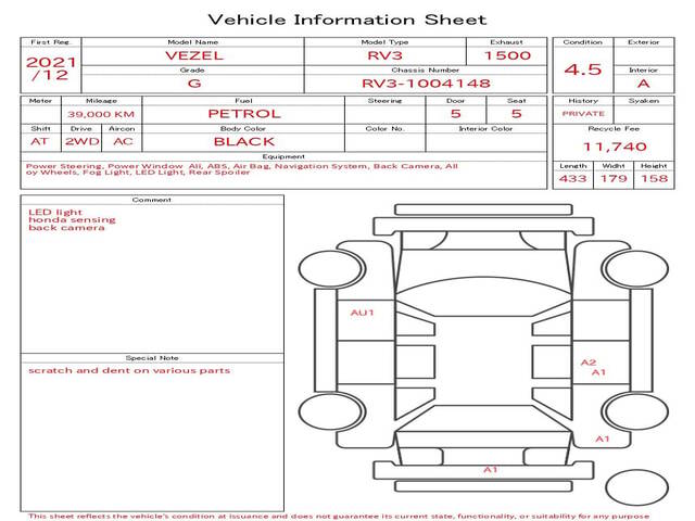 2021 HONDA VEZEL G