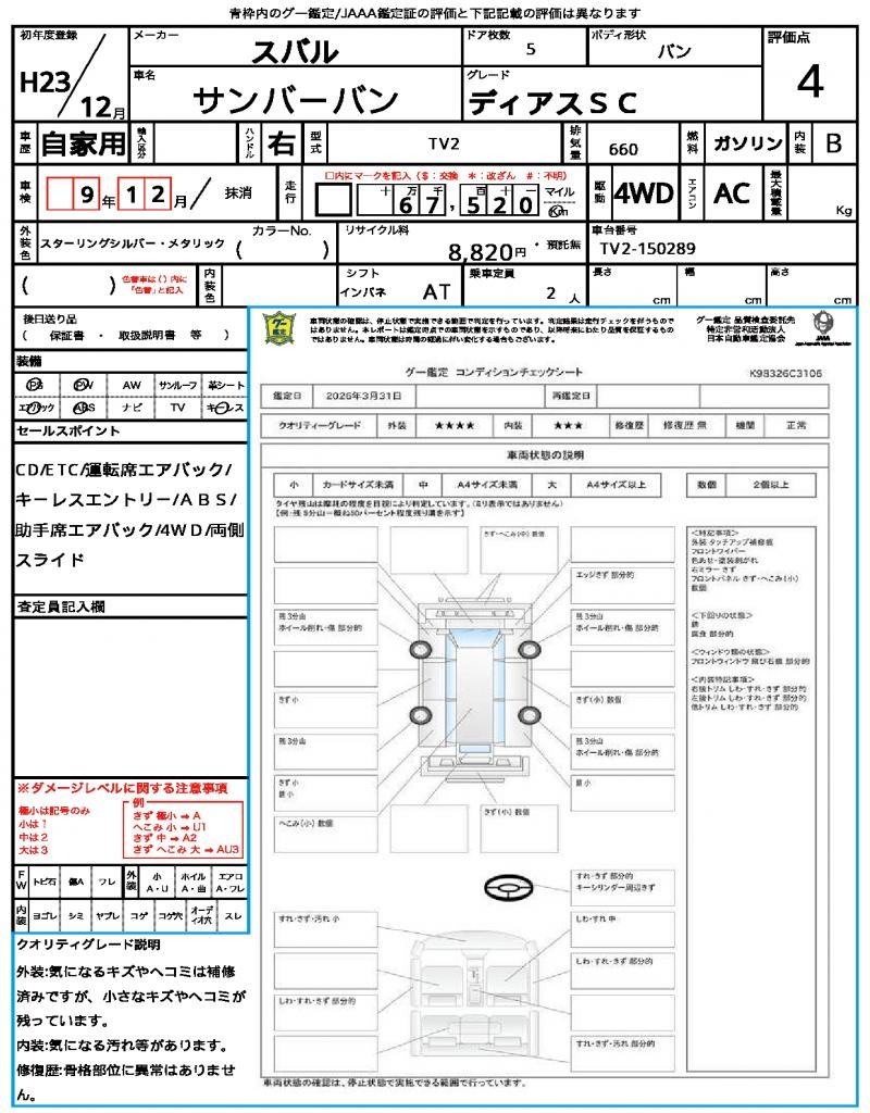 2011 SUBARU SAMBAR VAN