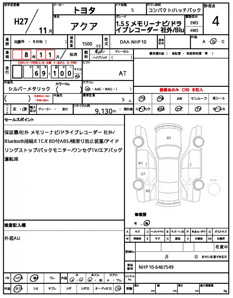 2015 TOYOTA AQUA
