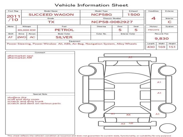 2011 TOYOTA SUCCEED WAGON TX