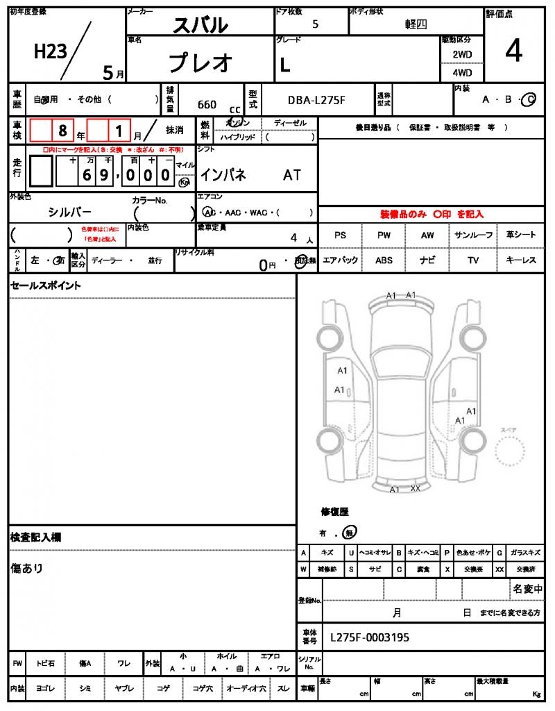 2011 SUBARU PLEO L
