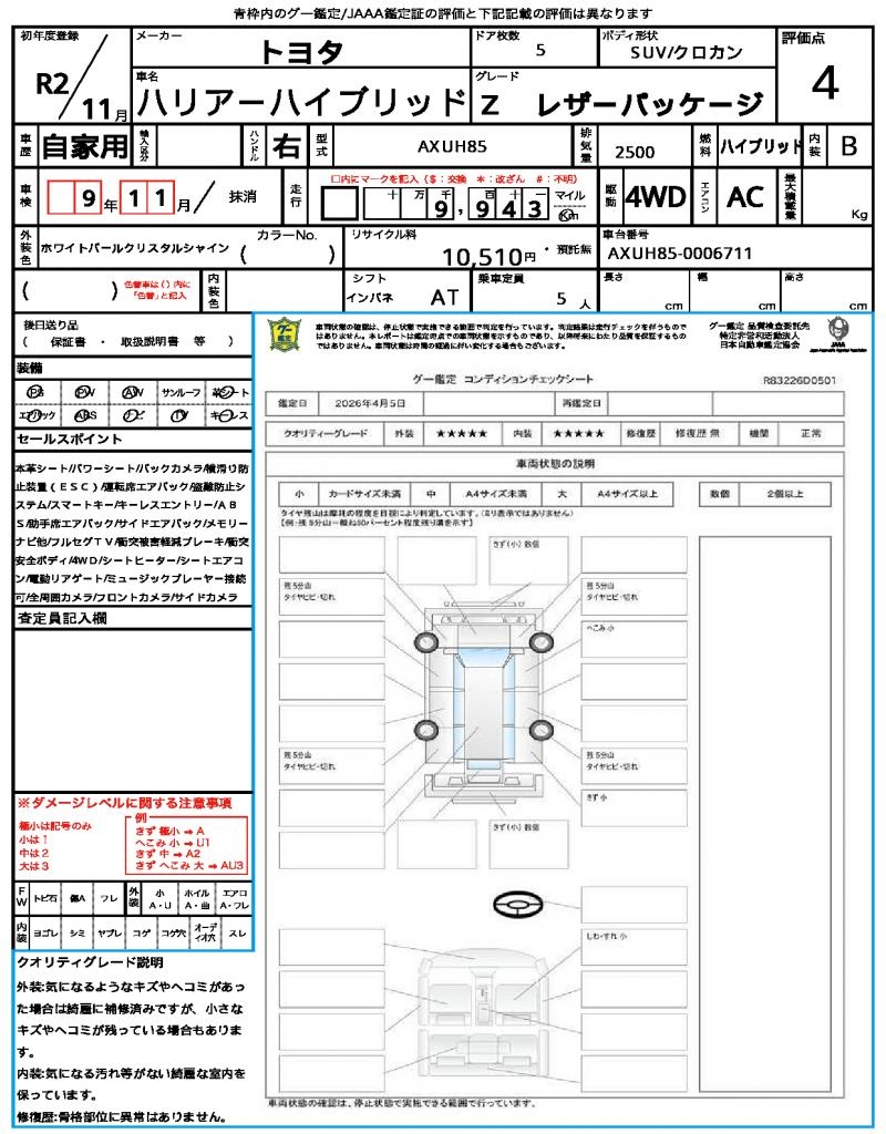 2020 TOYOTA HARRIER HYBRID Z LEATHER PKG