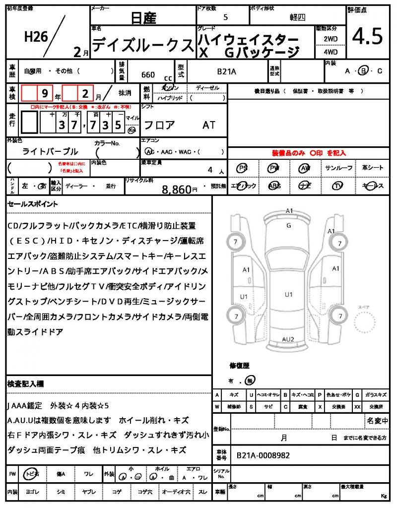 2014 NISSAN DAYZ ROOX