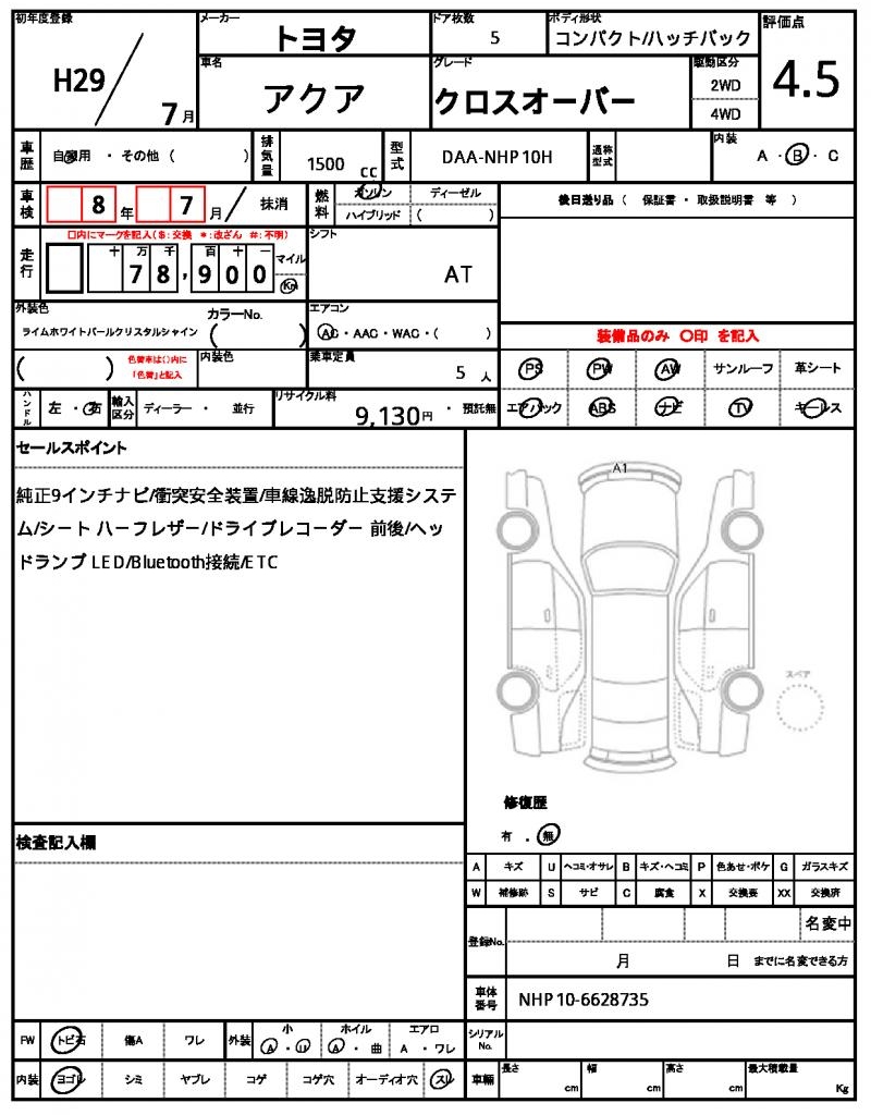 2017 TOYOTA AQUA CROSSOVER