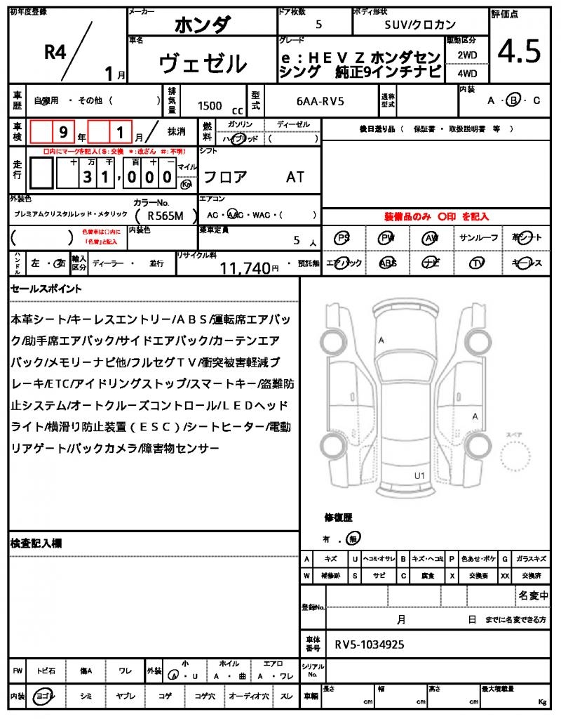 2022 HONDA VEZEL