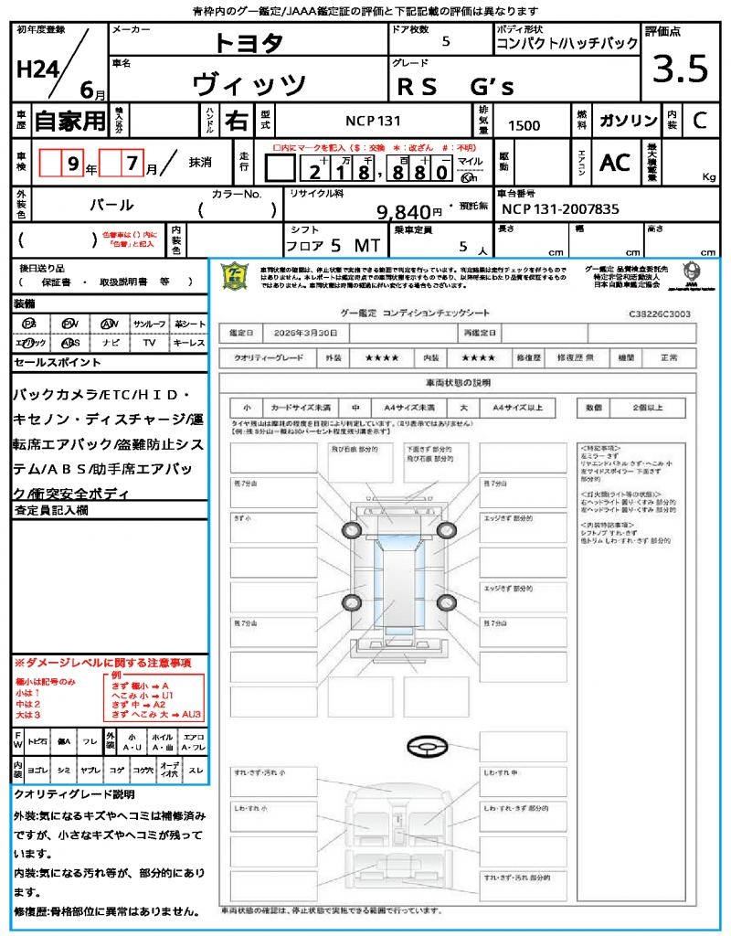 2012 TOYOTA VITZ (YARIS) RS G’S