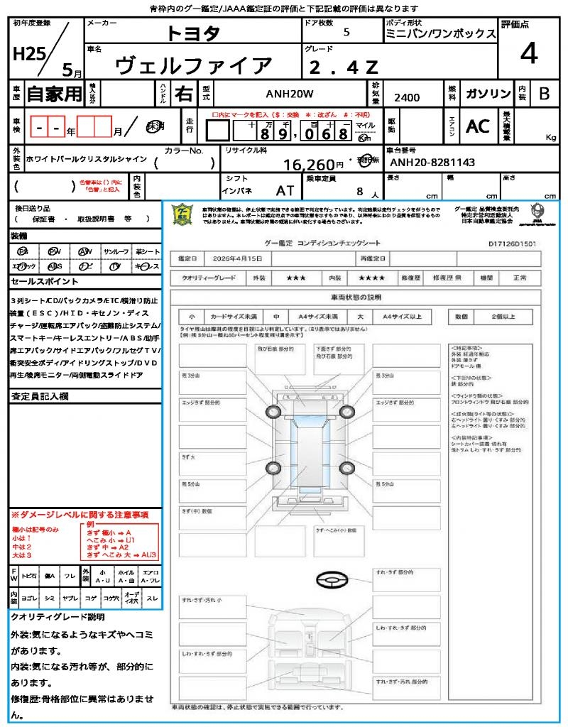 2013 TOYOTA VELLFIRE 2.4Z
