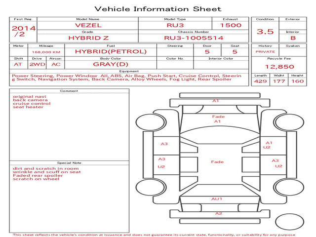 2014 HONDA VEZEL HYBRID Z