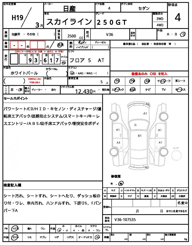 2007 NISSAN SKYLINE 250GT